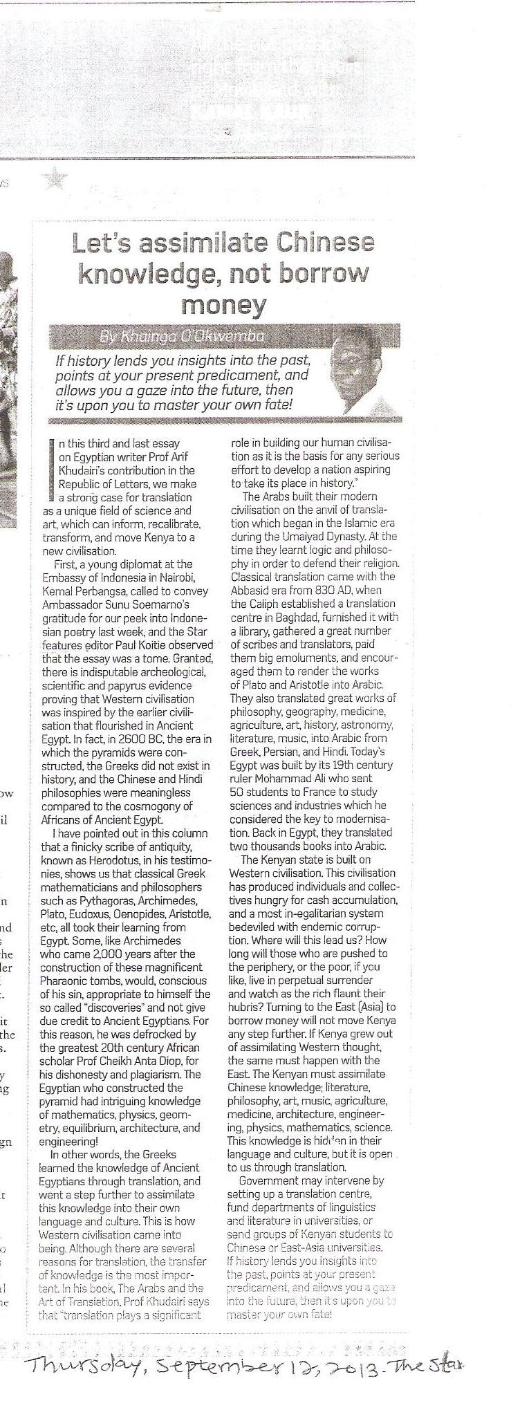 - “Egyptian poet Arif Khudairi sings ode to Nairobi” By KHAINGA O’OKWEMBA